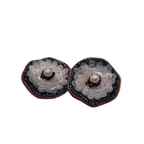 Boucles d'oreilles à clips COCARDE - broderie haute-couture