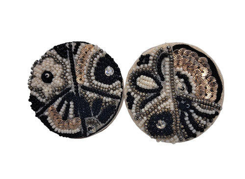 Les boucles d'oreilles à clips sont brodées main avec des perles de verre, des paillettes et des strass. Chaque modèle est unique !