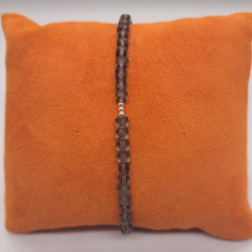 • Bracelet en labradorite et argent. Au centre une améthyste
