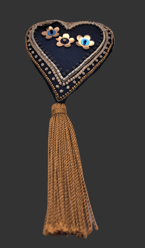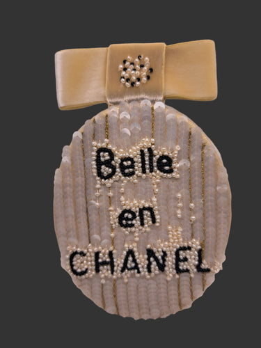 Chaque broche est délicatement brodée à la main, avec des perles de verre, paillettes et strass.