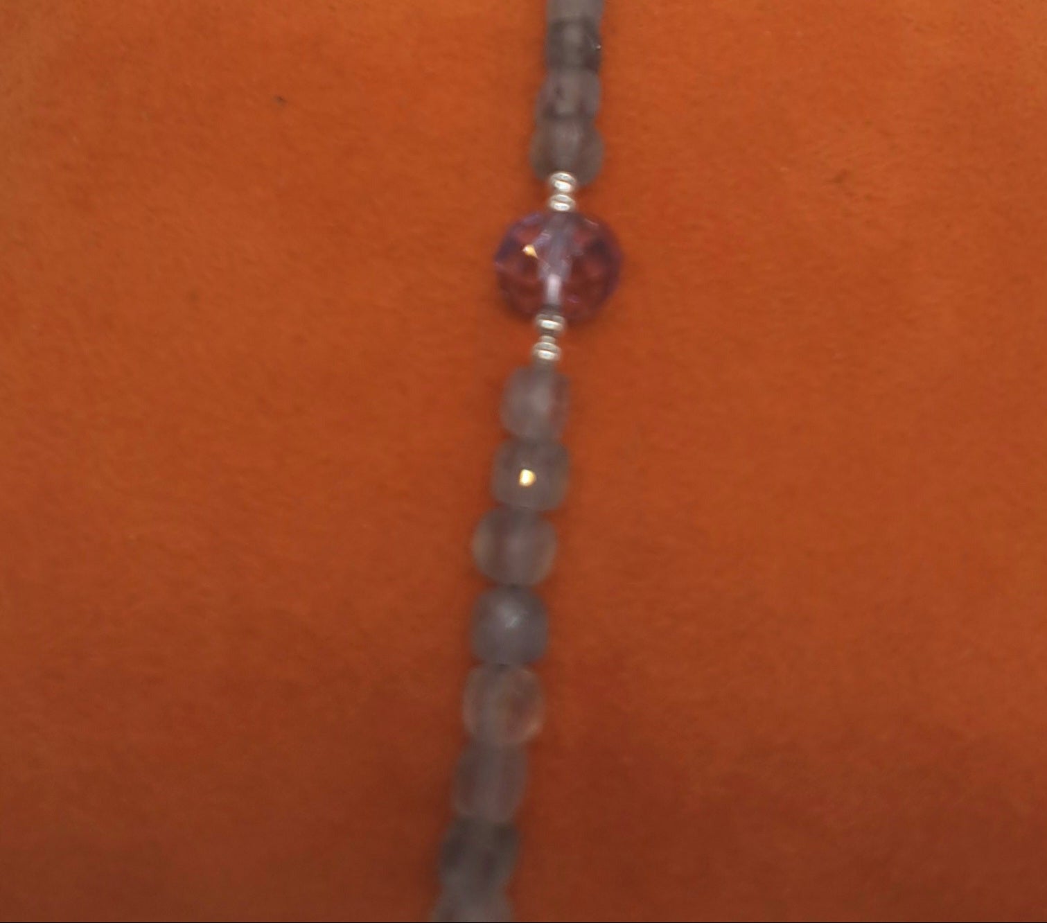 Bracelet monté sur câble avec : labradorites, perles d'argent 925 et améthyste au centre