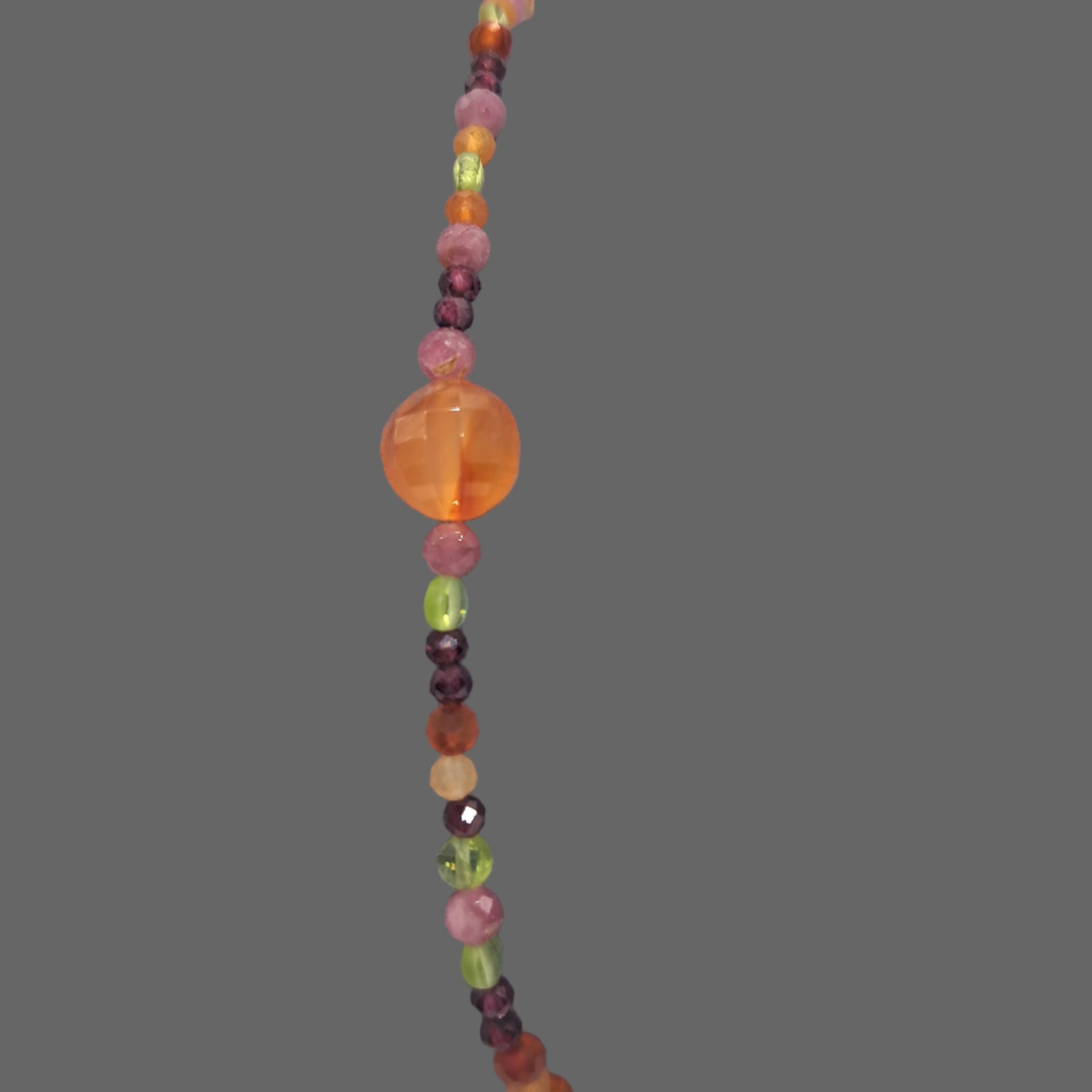 Bracelet monté sur câble avec perles de cornaline, péridot, grenat, aventurine et tourmaline.