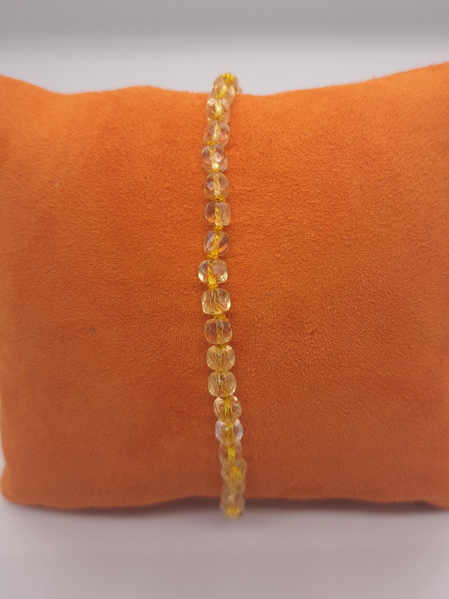 Bracelet en citrines en forme de cubes. Montage sur cordon avec noeuds de joaillier. Fermeture adaptable avec noeud macramé.